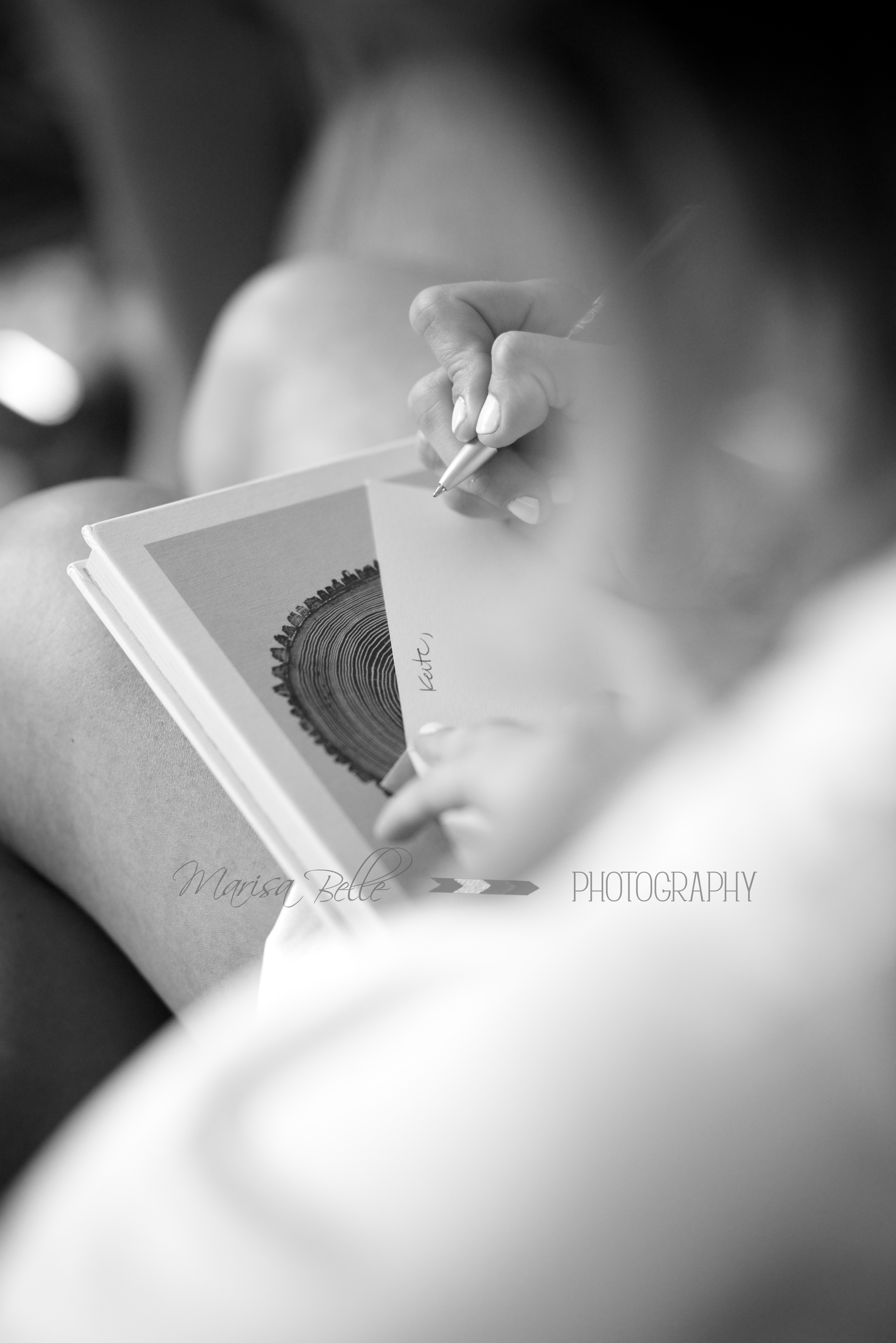 Taking some time out to write her dedicated bridesmaids a thank you note.